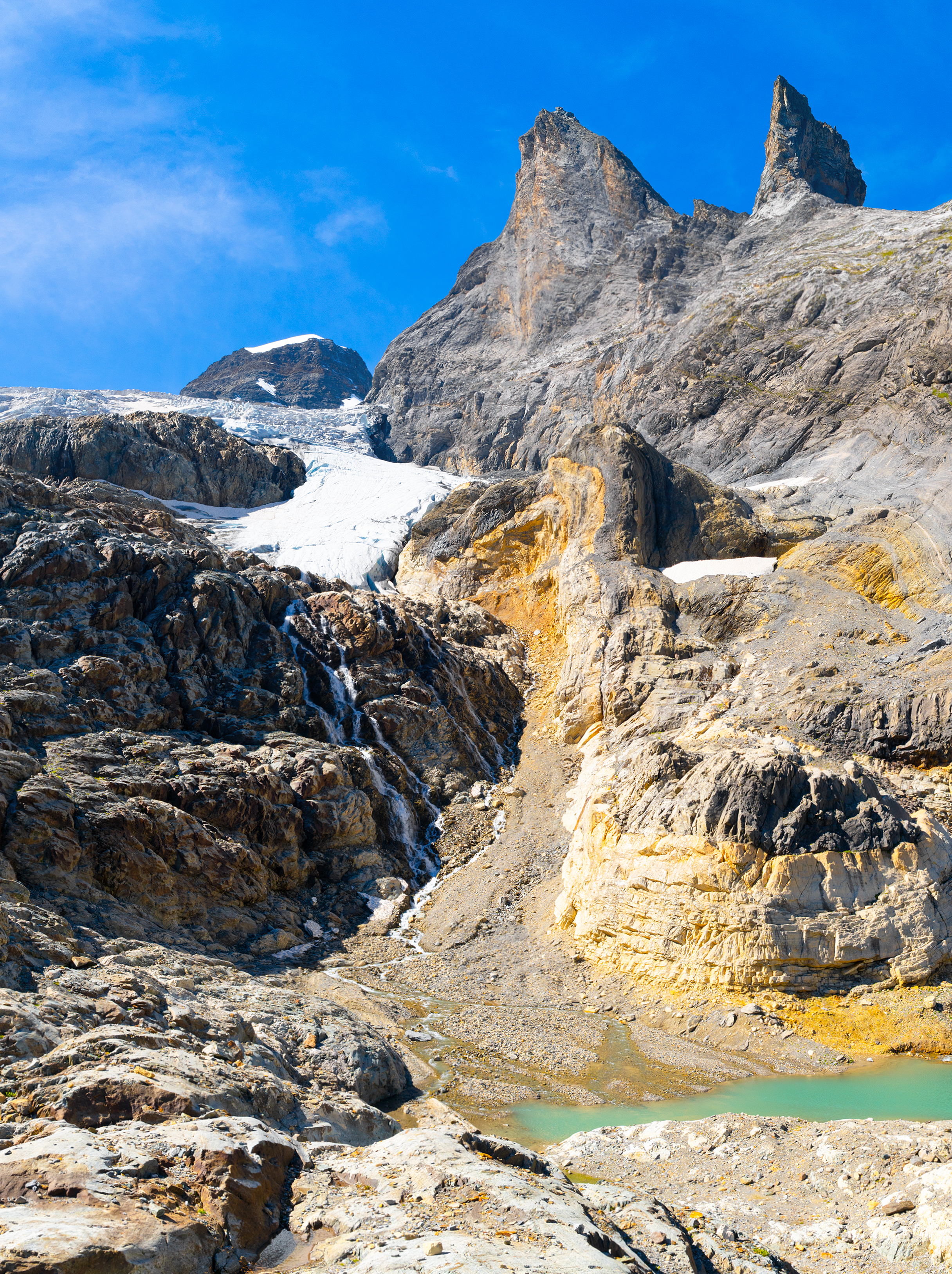 Oder gerade diesen Herbst konnte ich beim Breithorngletscher im Hinteren Lauterbrunnental eine neue Passage abschreiten, die bis vor kurzem noch eisbedeckt war. Als ich dann Richtung ehemaligem Gletscherrand, also zur Zeit, als ich mit meinen Untersuchungen begonnen hatte, hochschaute, konnte ich den massiven Mächtigkeitsverlust in dieser kurzen Zeit fast nicht glauben. Das tat schon sehr weh.